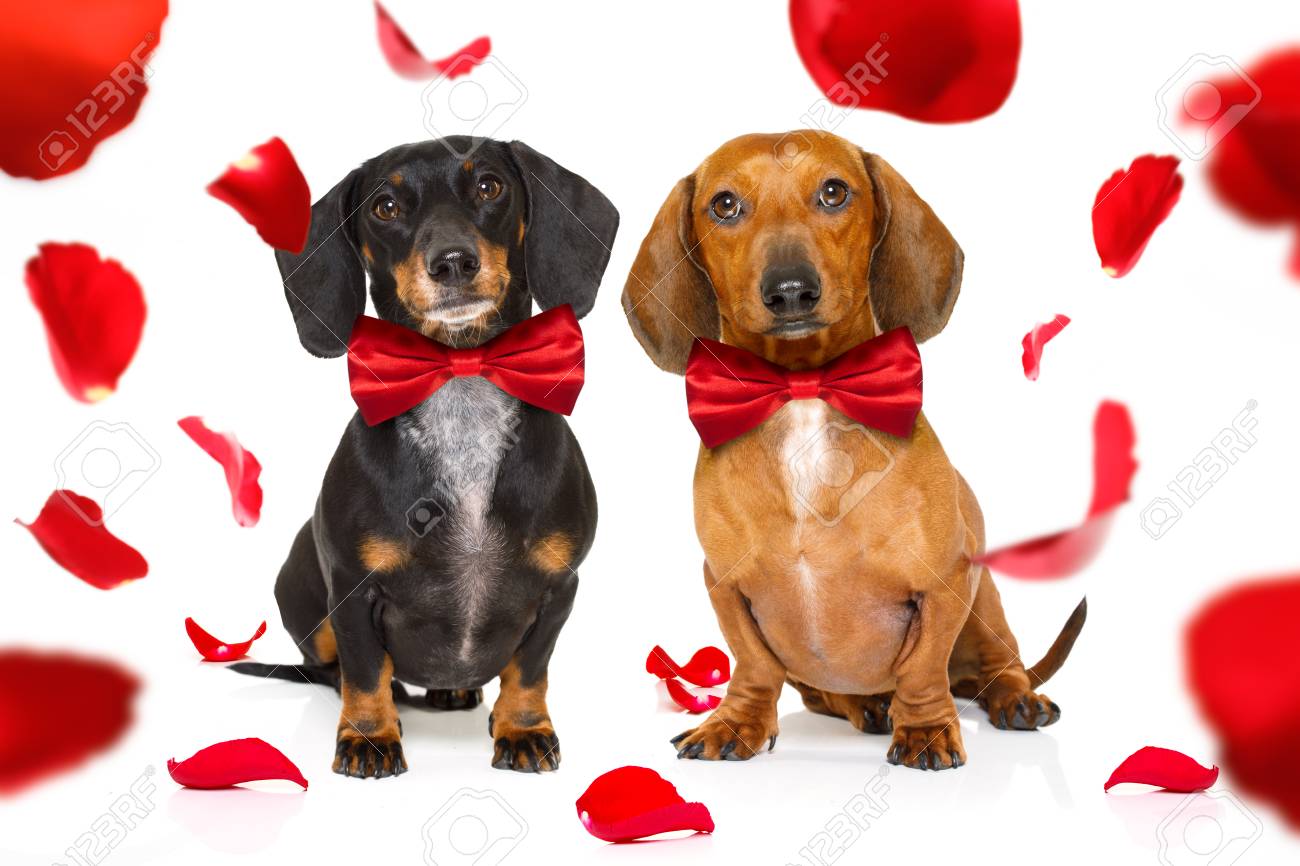 Pareja De Perros Salchicha Salchicha Enamorados Por El Feliz Dia De San Valentin Con Una Flor Rosa En La Boca Fotos Retratos Imagenes Y Fotografia De Archivo Libres De Derecho Image 93228981
