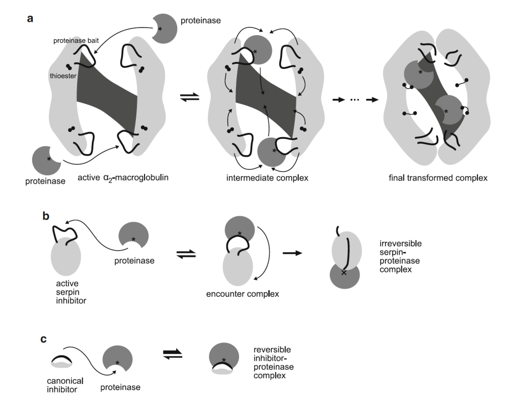 The classical inhibitors show covalent binding to the catalytic serine which is in most cases pseudo-irreversible for example with camostat. Accordingly the actions of these types of proteases are regulated by serine protease inhibitors SPIs.
