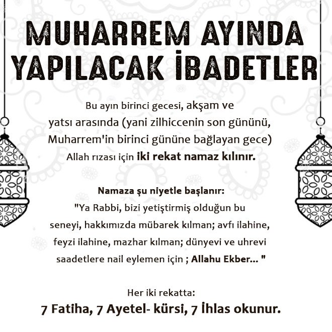 Muharrem ayı bu sene 9 Ağustosta başlayacak. Muharrem ayı Hicri takvime nazaran yılın birinci ayı kabul edilir. Günlerinde oruç tutmayı tavsiye etmiştir.